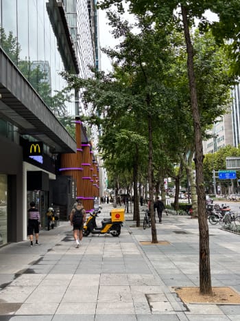 マクドナルドの前を通り過ぎ
