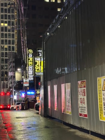 江南(カンナム駅)3番出口を出たら、後ろを振り向いて逆方向に進みます。